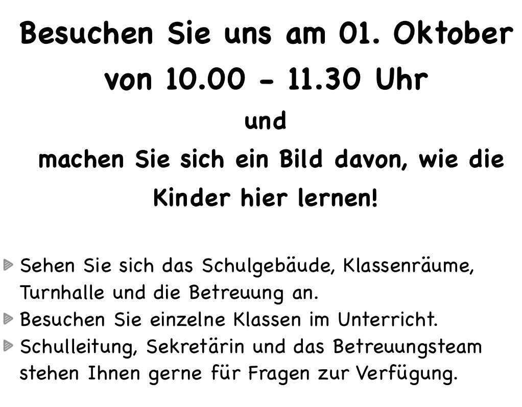 Termine für die Schulanmeldung können Sie telefonisch mit uns vereinbaren. Rufen Sie dafür bitte in der Woche vom 27.10. - 31.10.2025 in unserem Sekretariat an.